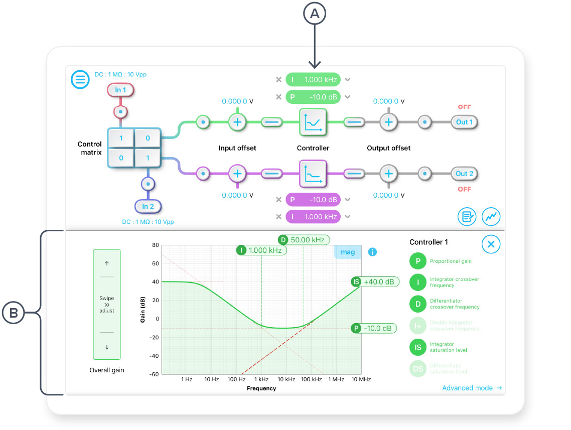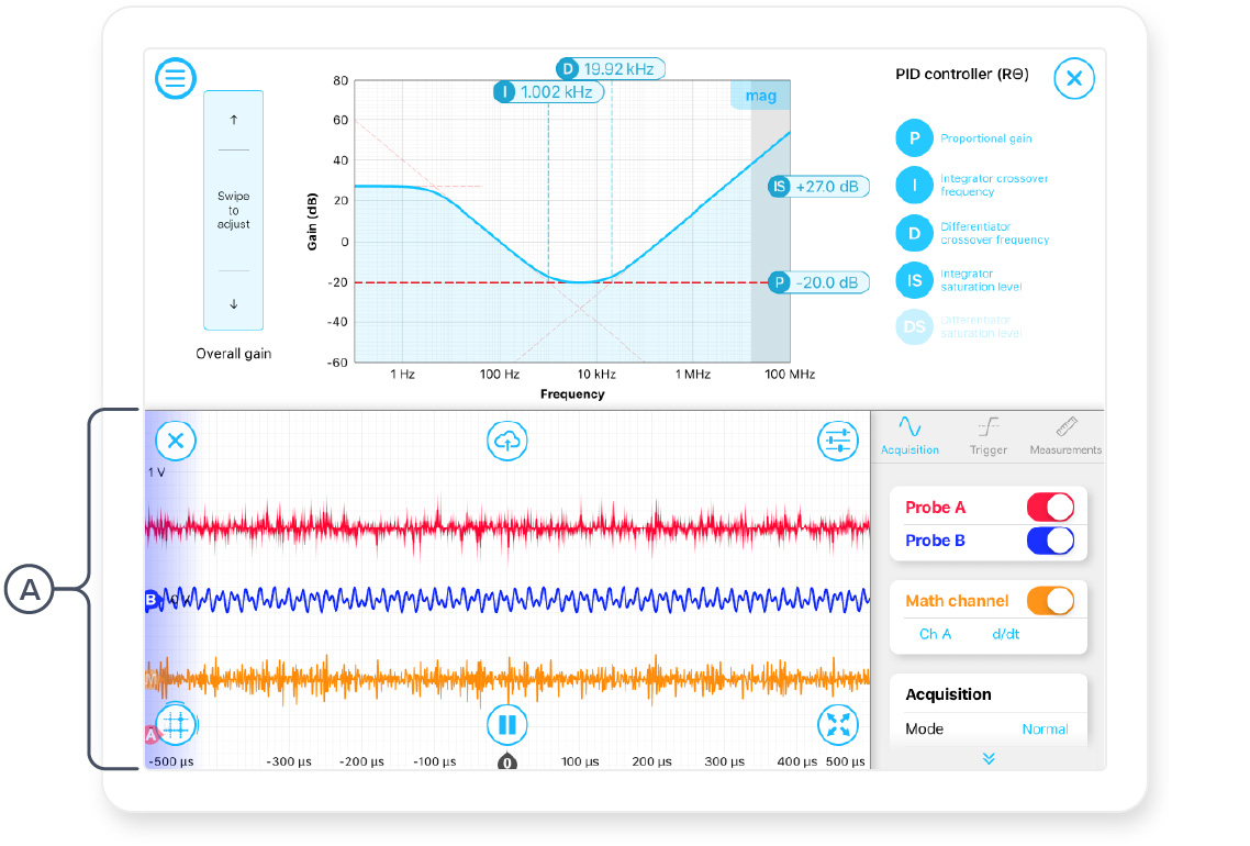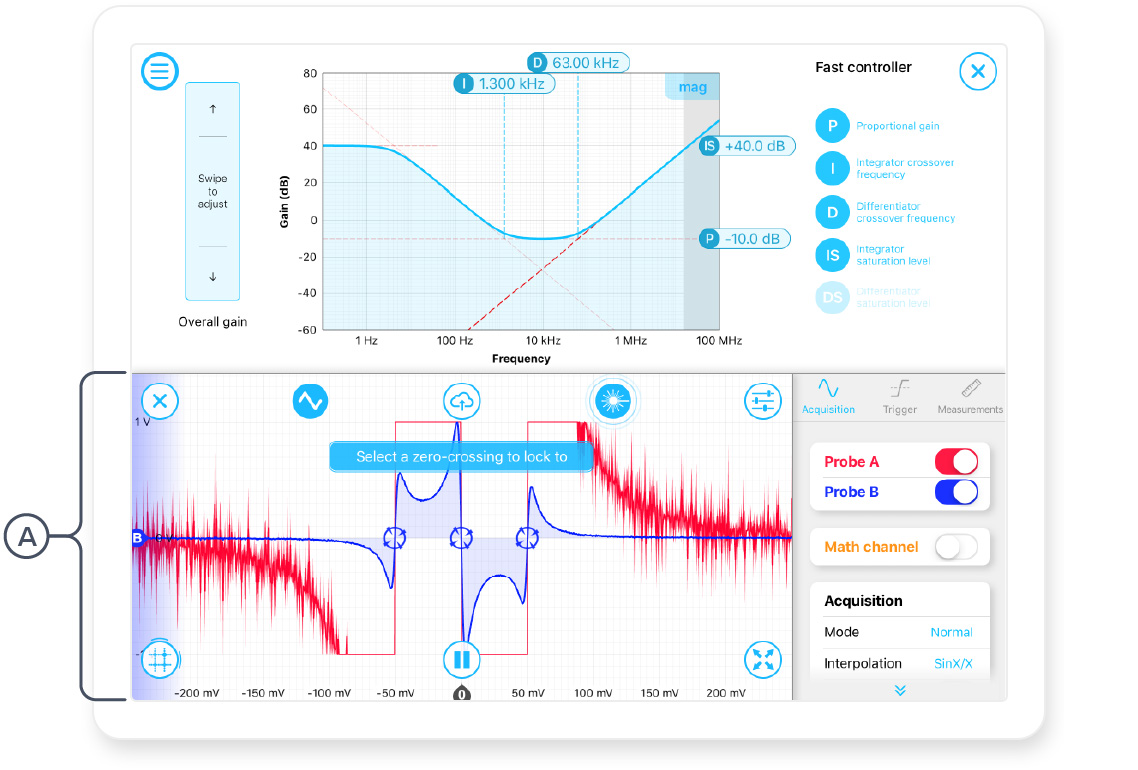 The user interface update for these two instruments now allows for the PID controllers to be configured while simultaneously using the embedded oscilloscope, making it easier to see the effect of changing controller parameters on a signal.