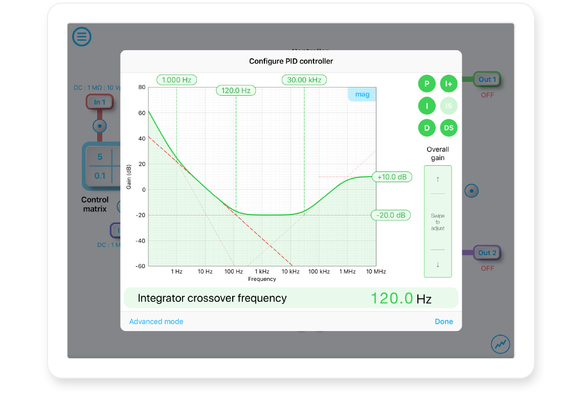 Configuring and adjusting your PID controller no longer has to interfere with your entire setup. Access the visual screen below your block diagram or quickly modify the proportional, integral, or derivative components by tapping the figures.