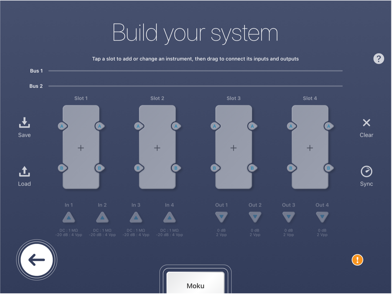 Figure 1: Multi-instrument mode user interface on Moku:Pro – all 4 slots empty