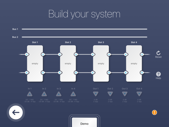 Figure 1: Multi-instrument mode user interface on Moku:Pro – all 4 slots empty