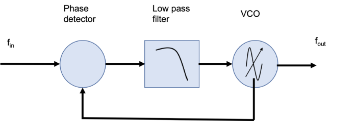 The most basic PLL is a phase detector followed by a low-pass filter and a voltage controlled oscillator. A VCO provides a frequency output proportional to its input voltage.