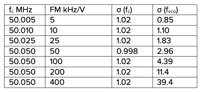 Table 1: σ Fvco vs FM depth