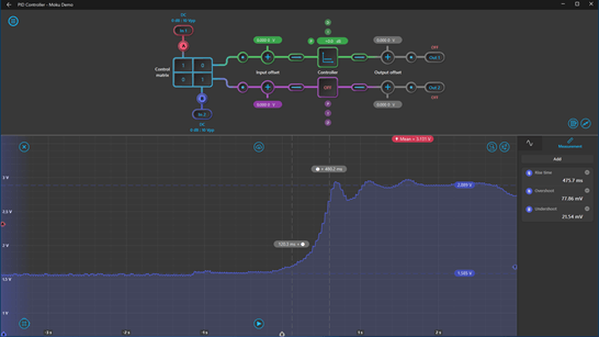 Moku:Go combines 13+ lab instruments in one high-performance device. This application note uses the Moku:Go PID Controller, Oscilloscope, and Programmable Power Supplies to provide a visually engaging way of learning various tuning methods for PID controllers.