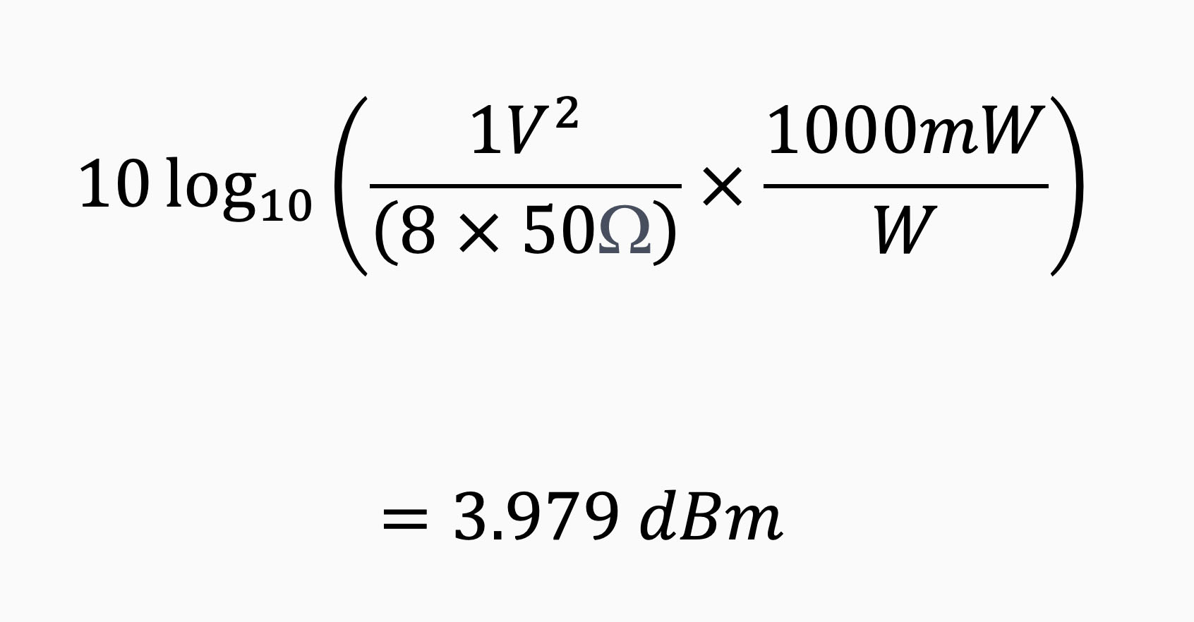 We determined that this 1 Vpp, driven across the 50 Ω input of Moku leads to a power measurement: