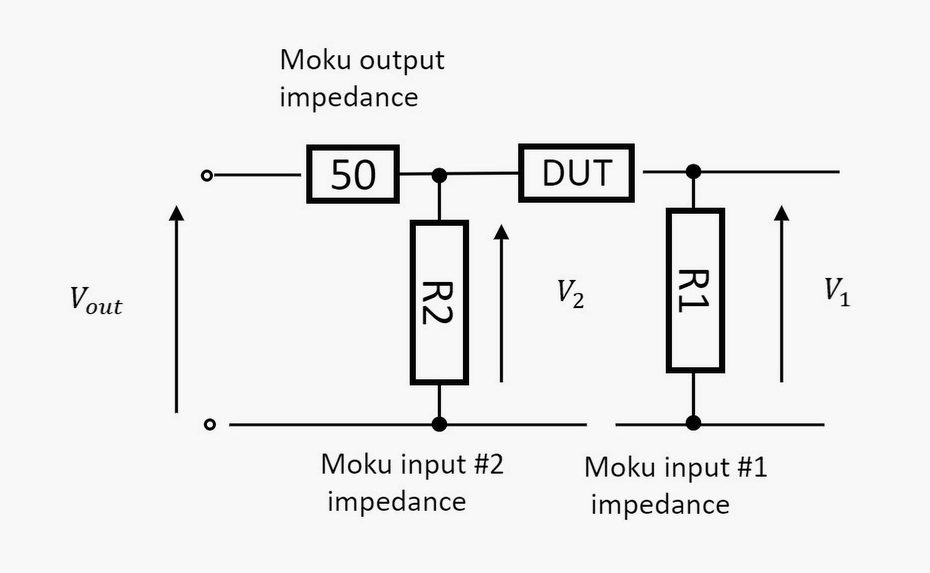 The equivalent circuit, showing the Moku:Lab input impedances, is shown in Figure 2.