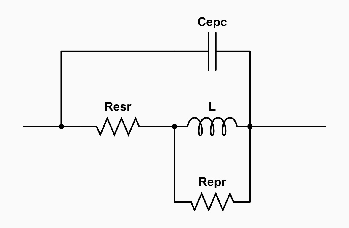 This occurs because a real-world practical coil inductor is not a perfect inductor, but rather it has some resistance and capacitance. The equivalent circuit is actually as shown in Figure 7.