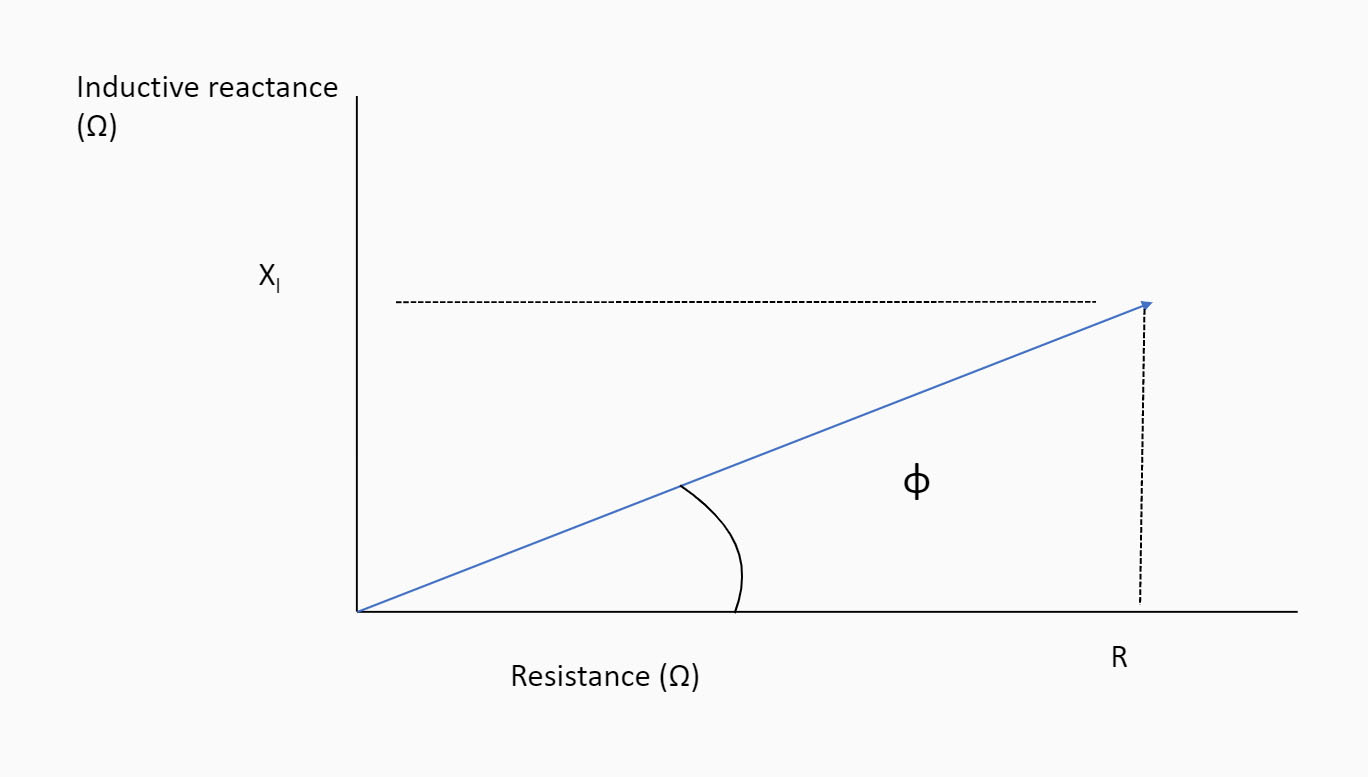 Basic circuit theory tells us that the inductor presents an inductive reactance and that this reactance and the Moku 50 Ω resistive input impedance can be represented as a phasor diagram (Figure 3)
