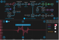 Using the built-in Oscilloscope probe points, we could measure the error signal RMS and optimize the overall loop gain, as shown in Figure 6. Increasing gain would potentially minimize the RMS of the error signal, but too much gain can cause oscillations, while too little gain meant that laser frequency perturbations remained insufficiently suppressed.