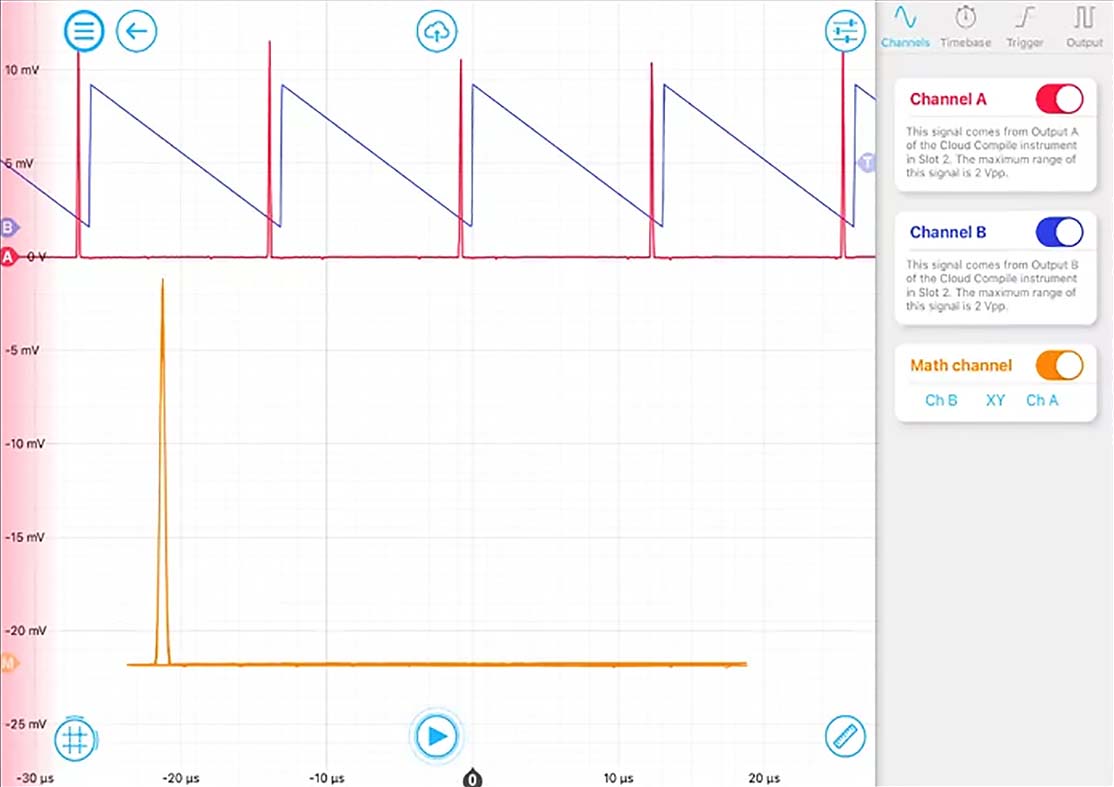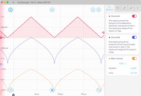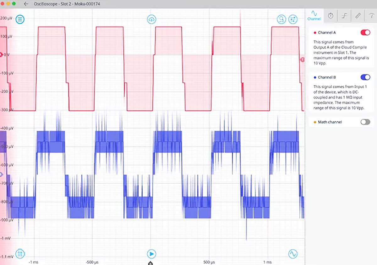 Simply write your code using a web browser, compile it in the cloud, and deploy the bitstream to one or more Moku devices in the app. You can write your code in HDL, start with one of our examples, or work with compatible tools like Simulink or MATLAB and HDL Coder.