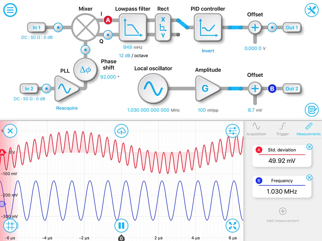 With seamless access to 13+ instruments, from an Oscilloscope to a PID Controller, Moku:Go has the right equipment for your application. The easy-to-use GUI for Windows, macOS and iPadOS helps simplify design, debug, and data collection. Tackle more advanced applications with the ability to implement custom FPGA code, API support, and specialized instruments like the Lock-in Amplifier and Laser Lock Box, previously unavailable in this device class.